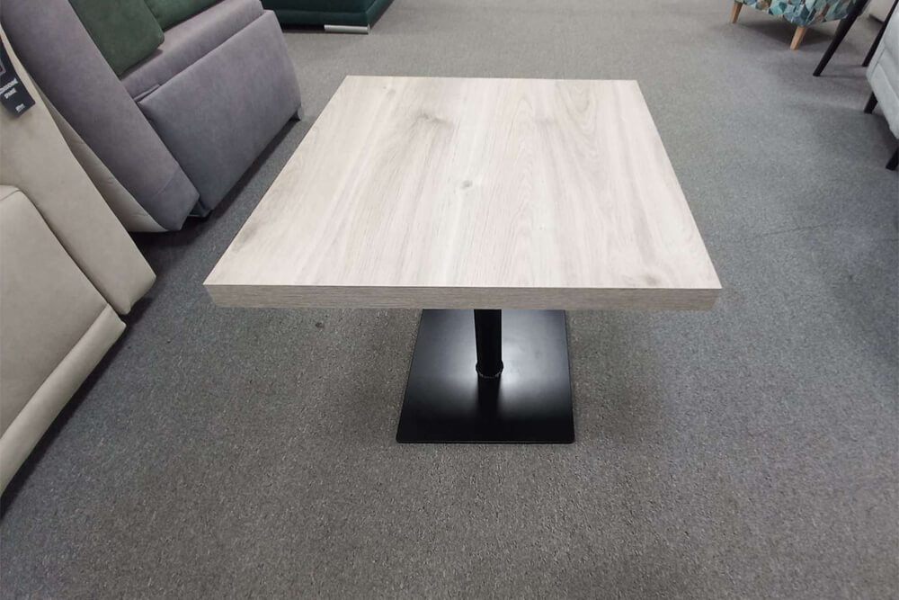Konferenčný stolík s kovovou centrálnou nohou, vhodný aj do kaviarní.