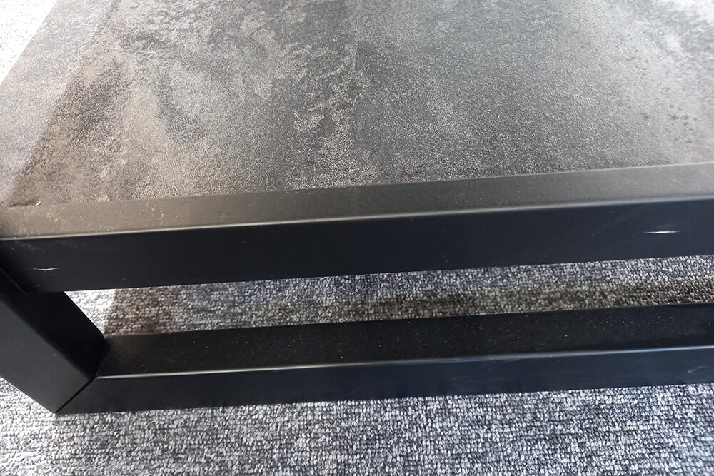 PLATON stolík má bukovú podnož čiernej farby a vyrába sa len v pevnom prevedení, resp. bez rozkladu. Stolík má vrchnú dosku vyrobenú z kvalitnej lamino dosky hrúbky 36 mm (polica má hrúbku 18 mm). Spodná polica je umiestnená od podlahy vo výške 131 mm.