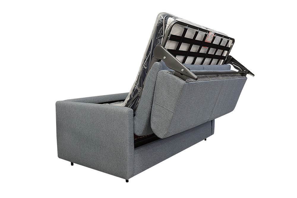Navrhli sme kreslo, ktoré na prvý pohľad pôsobí z estetického hľadiska veľmi uhladene. Prevládajú pekné rovné línie s príjemnými oblinami na hranách. Rozkladací "taliansky" mechanizmus je ukrytý v sedacej časti. Jednoduchým rozložením - potiahnutím opierkových vankúšov smerom k sebe získate veľkú pohodlnú plochu na spanie. Ložnú plochu je vhodné užívať na každodenné spanie.
