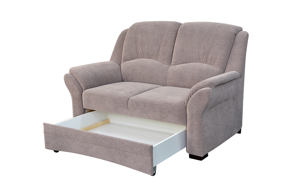 - úložný priestor v zásuvke dvojkresla sedacej súpravy rafinovane ukrytý v spodnej časti