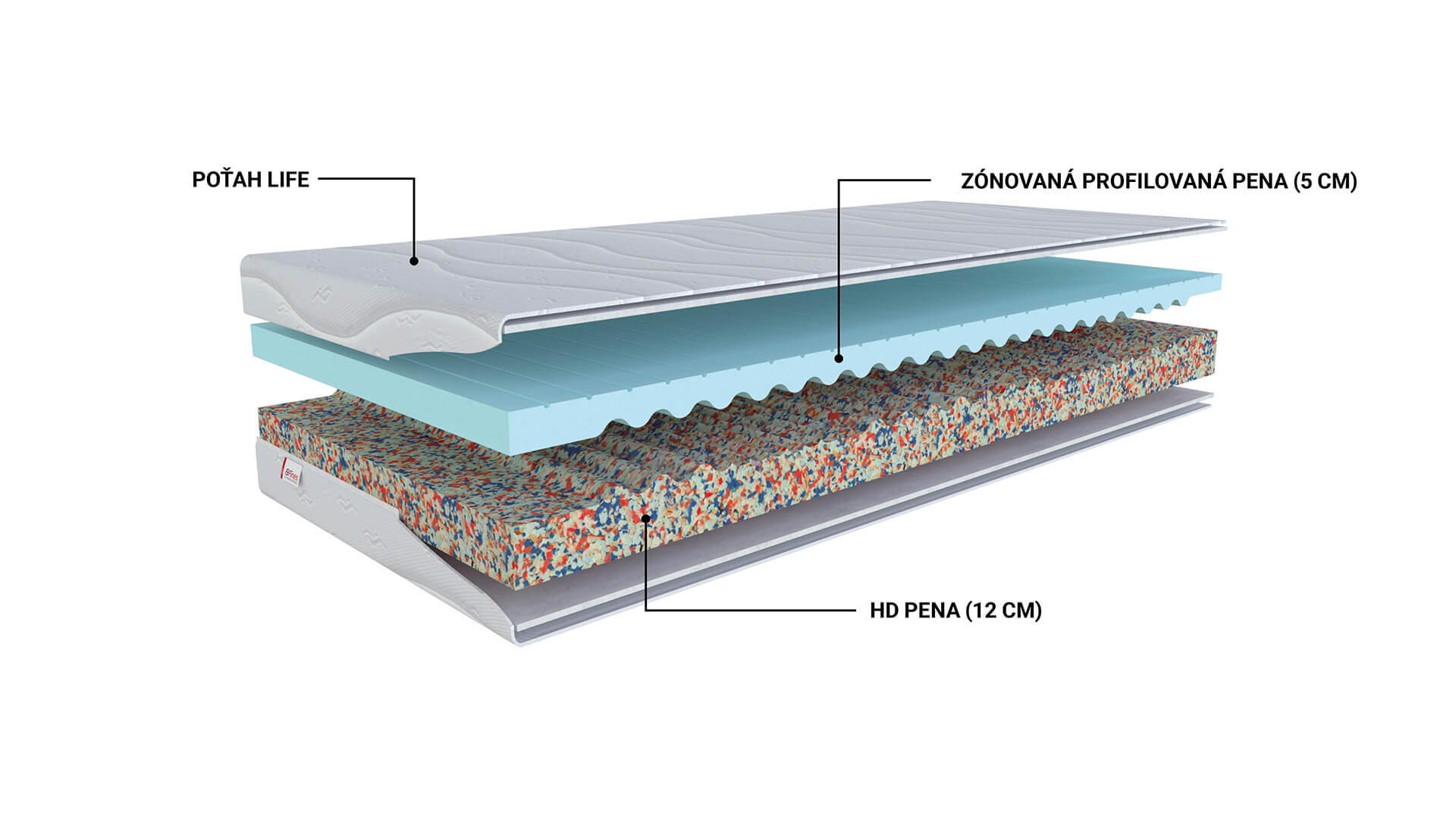 Zónová profilovaná pena - profilovaná pena robí matrac vzdušnejší a pomáha odvádzať nadmernú vlhkosť Navyše je veľmi pohodlná.