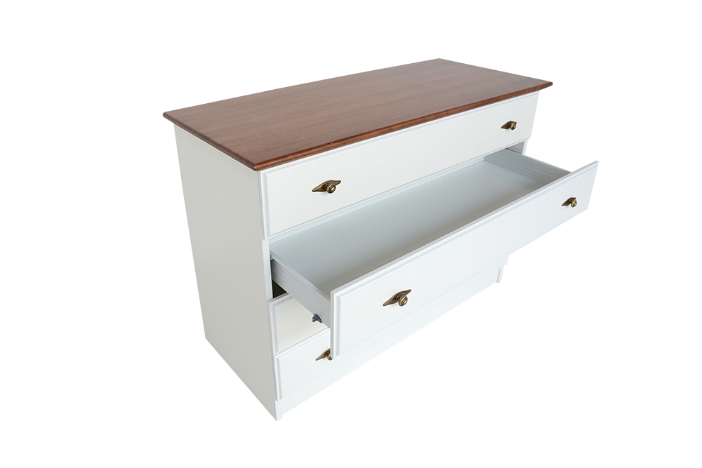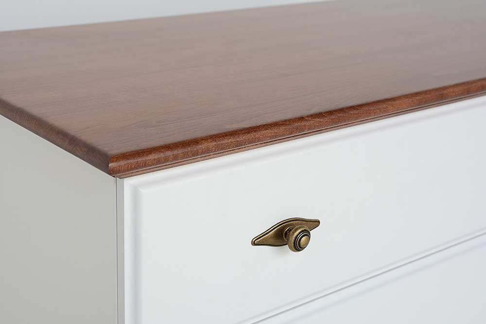 Komoda je vyrobená z kvalitného prírodného bukového masívu. Klasické kovanie a tvarované línie dodávajú nábytku tradičný vidiecky, resp. provensálsky štýl.
