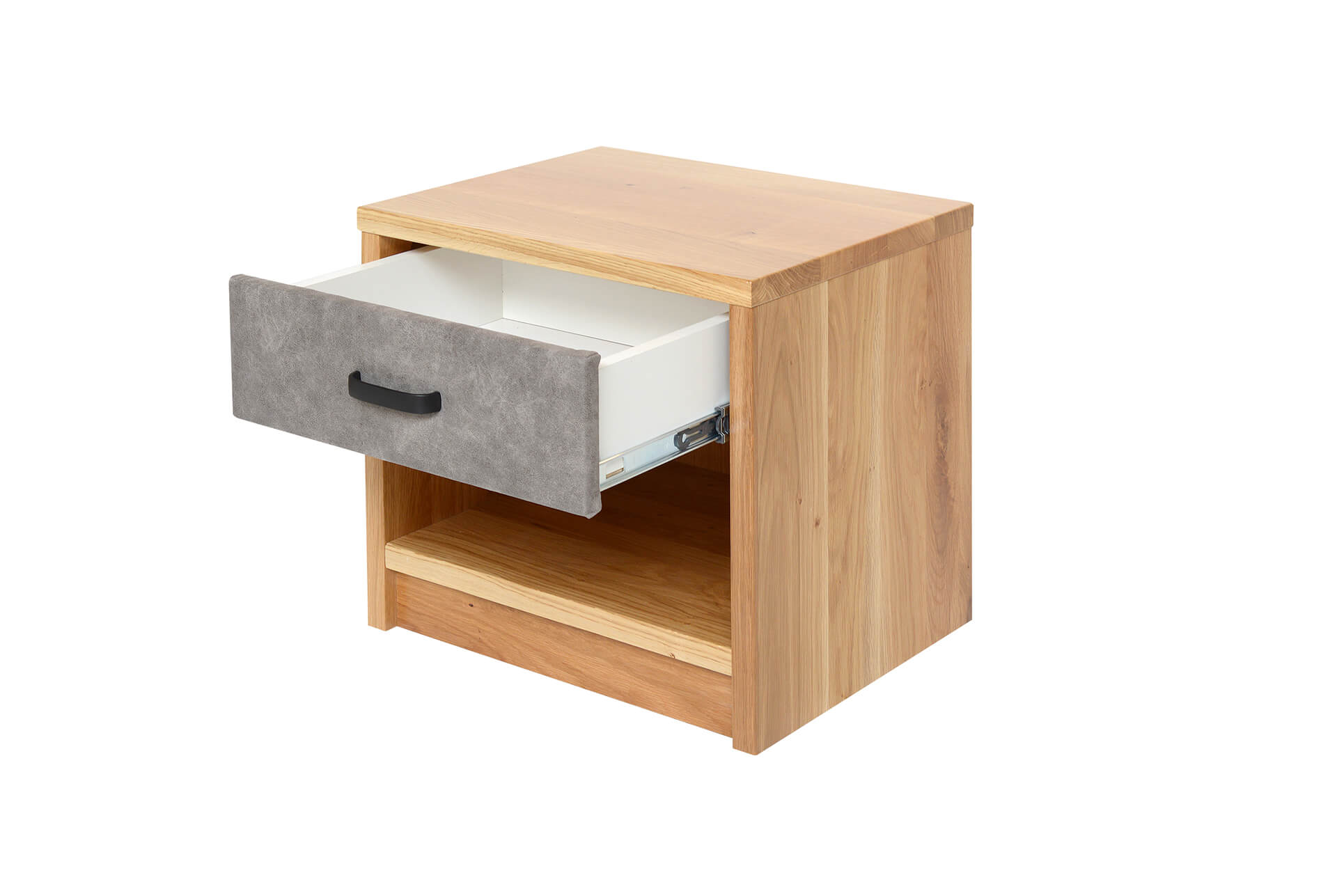 Trvácnosť nočného stolíka zaručuje kvalitný dubový masív, z ktorého je stolík vyrobený. Korpus nočného stolíka je vyrobený z dubového masívu hrúbky 26 mm.