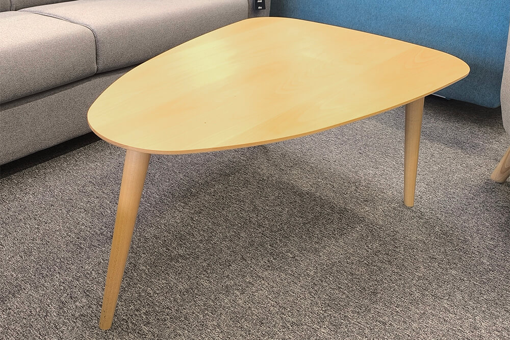 Jednoduchý, ale veľmi efektný konferenčný stolík so širokou variabilitou prevedení vrchnej dosky a bukových nožičiek.