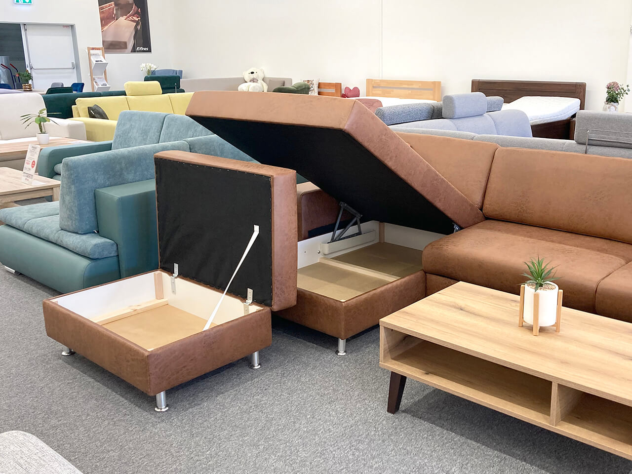 - úložný priestor v kratšej strane sedacej časti, prístupná vyklopením hornej časti sedáku