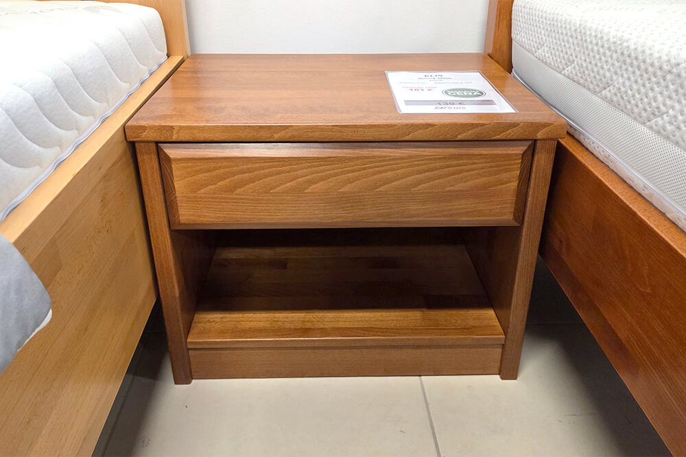 Pekné, do detailu opracované línie na každej hrane stolíka Vás musia chytiť za srdce už na prvý pohľad. Stolík má jednu zásuvku, a pod zásuvkou je voľný otvorený úložný priestor. Stolík pasuje napríklad ku posteli Mate Lux, Elinor, alebo aj k iným. Farebný odtieň stolíka si môžete zvoliť podľa nášho vzorkovníka morenia.