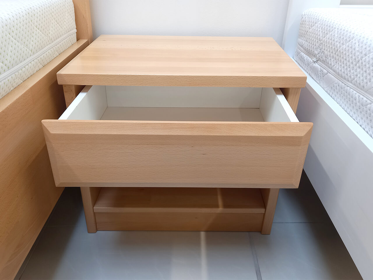 Nočný stolík je vyrobený z kvalitného bukového dreva.