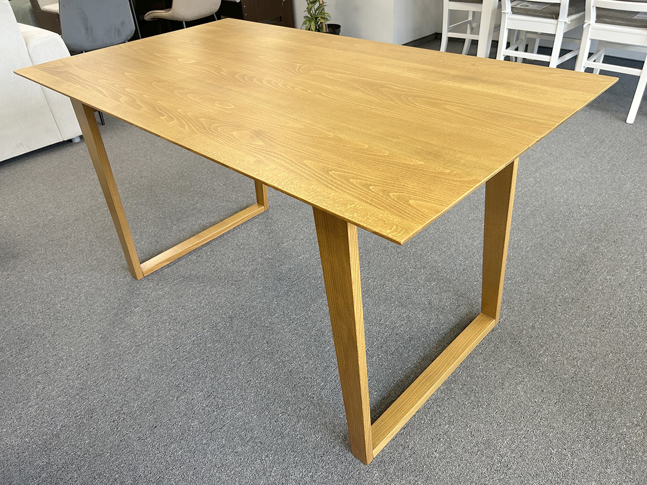 Stôl má vrchnú dosku vyrobenú z priebežnej bukovej škárovky. Na výber je dostupných viacero odtieňov povrchovej úpravy morenia/farbenia. Zaujímavý detail na stole sú zošikmené hrany po celom obvode vrchnej dosky.