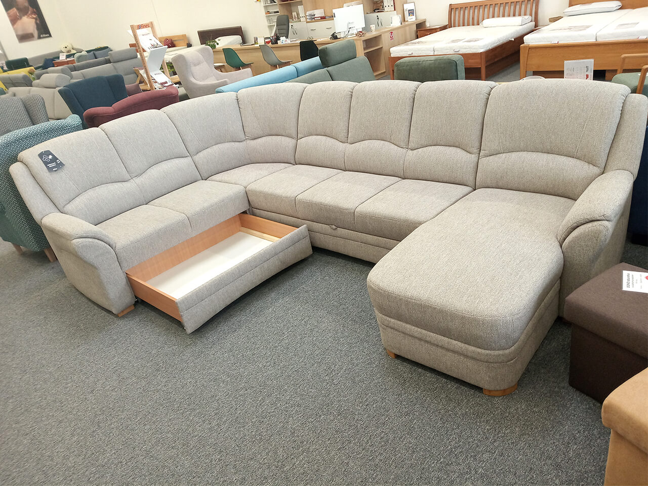 • Sedacia súprava s úložným priestorom Úložný priestor v zásuvke dvojkresla sedacej súpravy rafinovane ukrytý v spodnej časti.