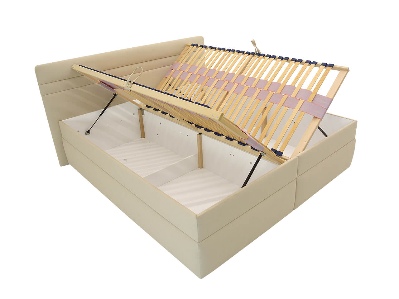 Čalúnená posteľ s elegantne prešitým čelom perfektne zapadne do každej spálne. Vysoká konštrukcia postele zabezpečuje pohodlné vstávanie z postele. Rozmerný úložný priestor, ktorý ponúkajú všetky naše čalúnené postele vám pomôže s uskladnením veci, ktoré práve nepotrebujete. Súčasťou roštov sú aj pneumatické vzpery, ktoré uľahčujú manipuláciu s roštami pri výklope. Každý kontajner má dve vetracie mriežky pre prirodzenú cirkuláciu vzduchu.