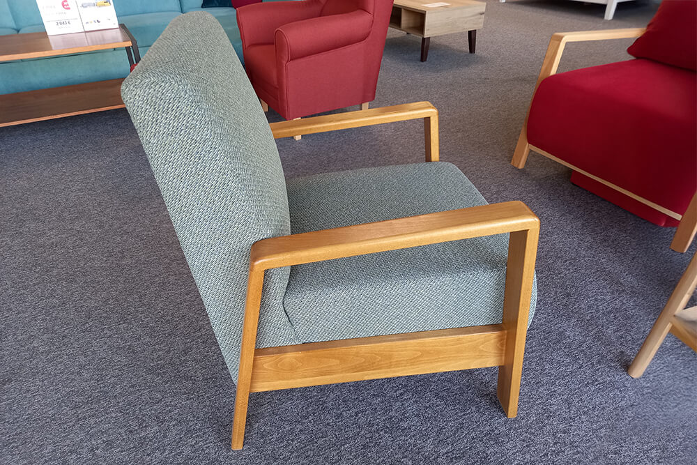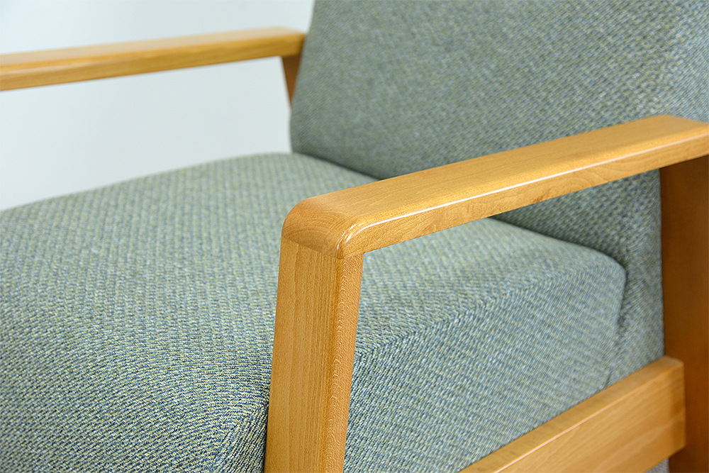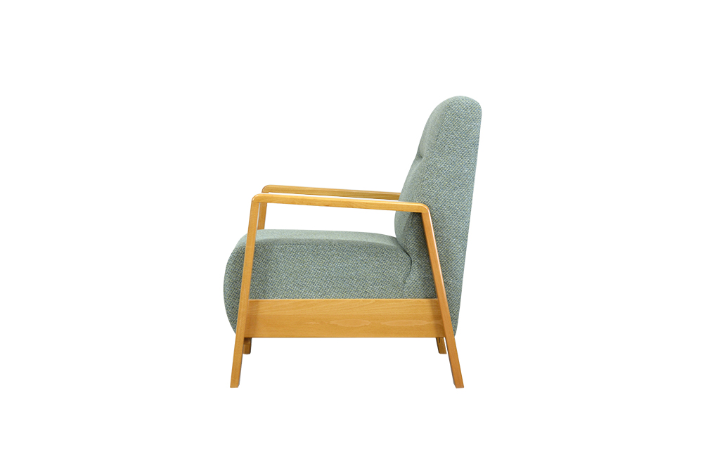 Retro kreslo s modernom prevedení. Kreslo Mania Retro je dostupné v dvoch prevedeniach, s prešitou opierkou, s tzv. vťahom, alebo s hladkou opierkou, bez prešitia. Poťahovú látku na čalúnenie kresla je možné vybrať zo širokého výberu látok firmy FINES. Farebné prevedenie masívnych bokov kresla si môžete vybrať z našej ponuky morenia.