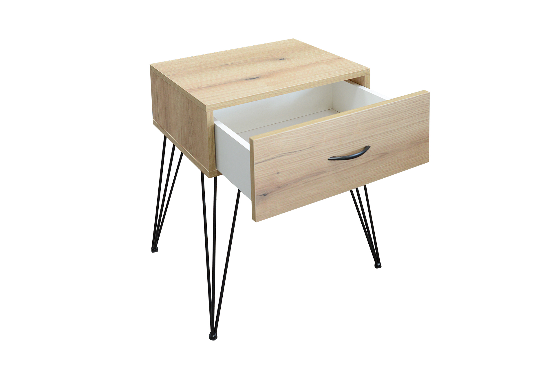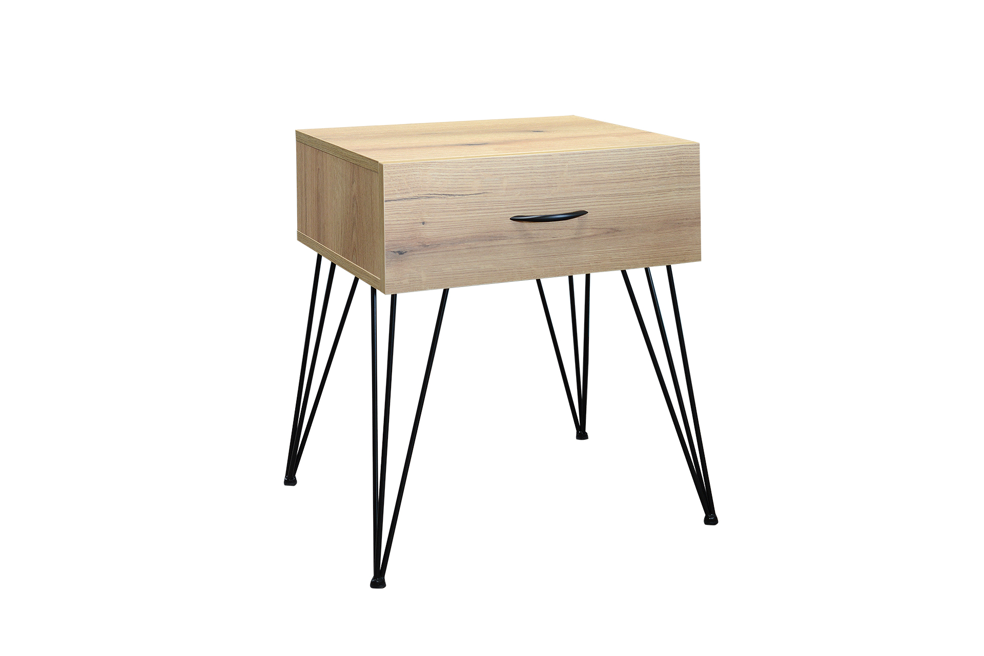 - nočný stolík je vyrobený z DTD lamino dosky hrúbky 18 mm v kombinácii s kovovou podnožou