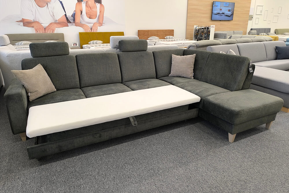 - malý rozklad plochy na komfortné spanie, umiestnený v zásuvke pod dlhšou stranou sedacej časti.
