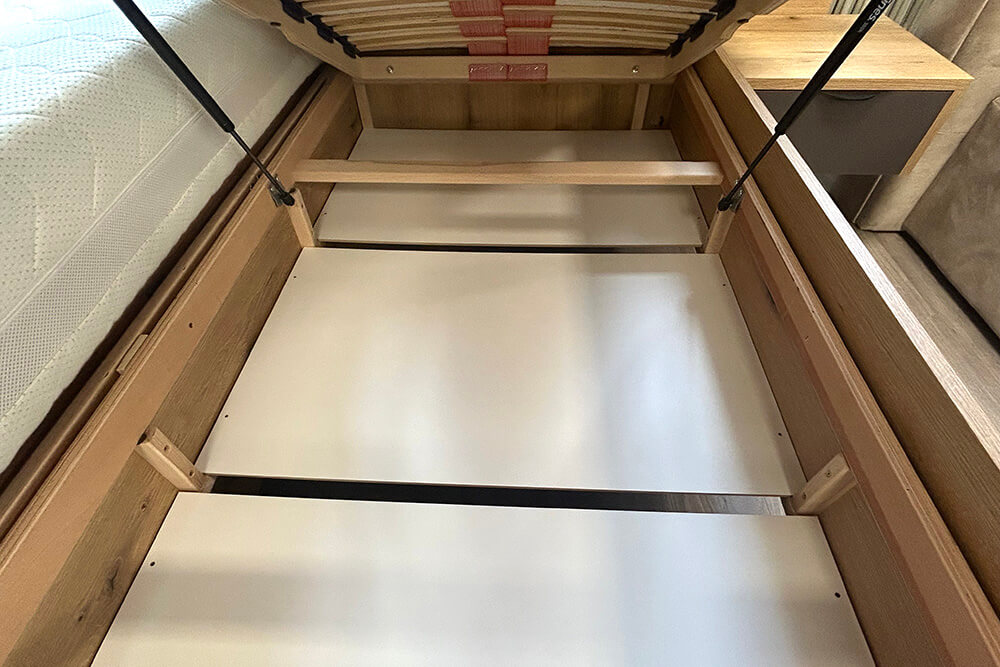 - ITG úložný priestor - úložný priestor je skrytý za bočnicou postele, je nad podlahou