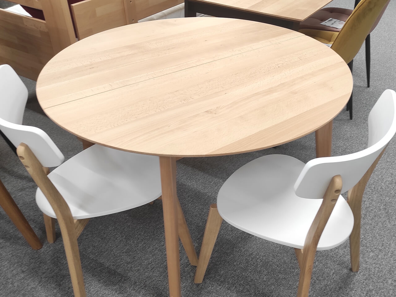 OLIVER Ø105 bukový jedálenský stôl rozkladací
