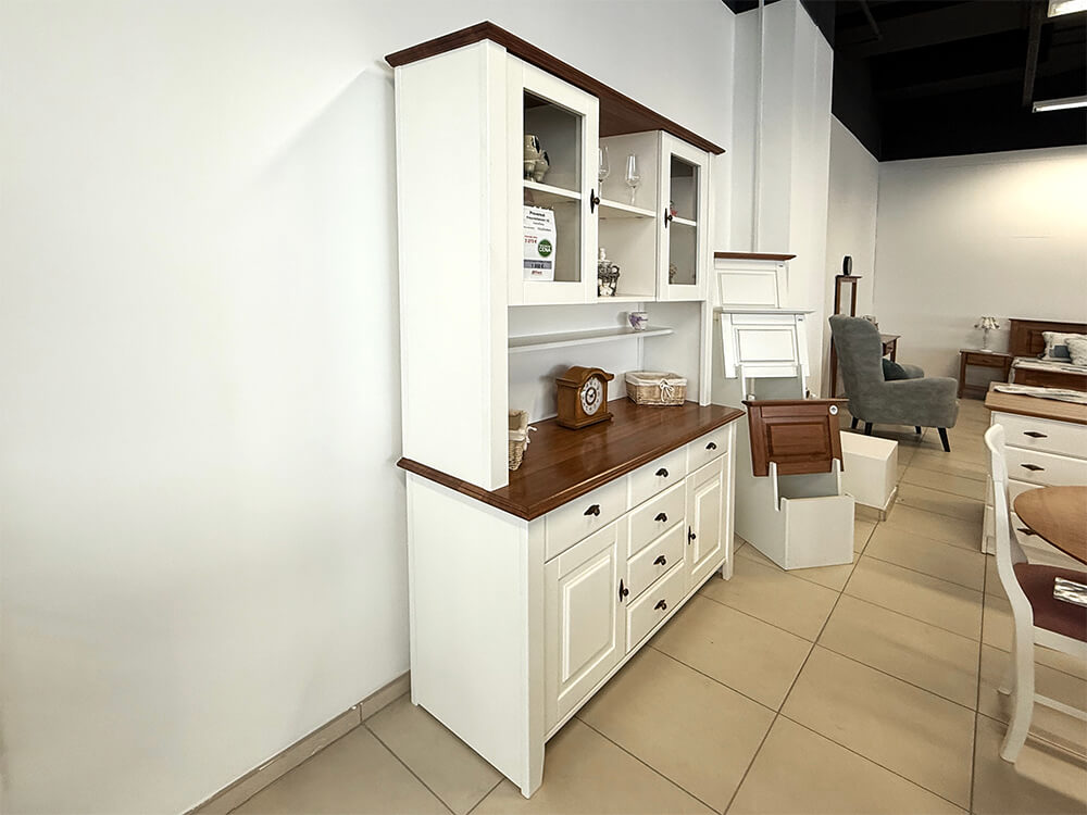 Precízne a poctivo vyrobený príborník s množstvom úložného priestoru a odkladacích miest. Použité prírodné drevo zabezpečuje dlhú životnosť výrobku. Klasické kovanie a tvarované línie dodávajú nábytku tradičný provensálsky štýl. Príborník má v štandarde doťahy výsuvov zásuviek a dovieranie dverí.