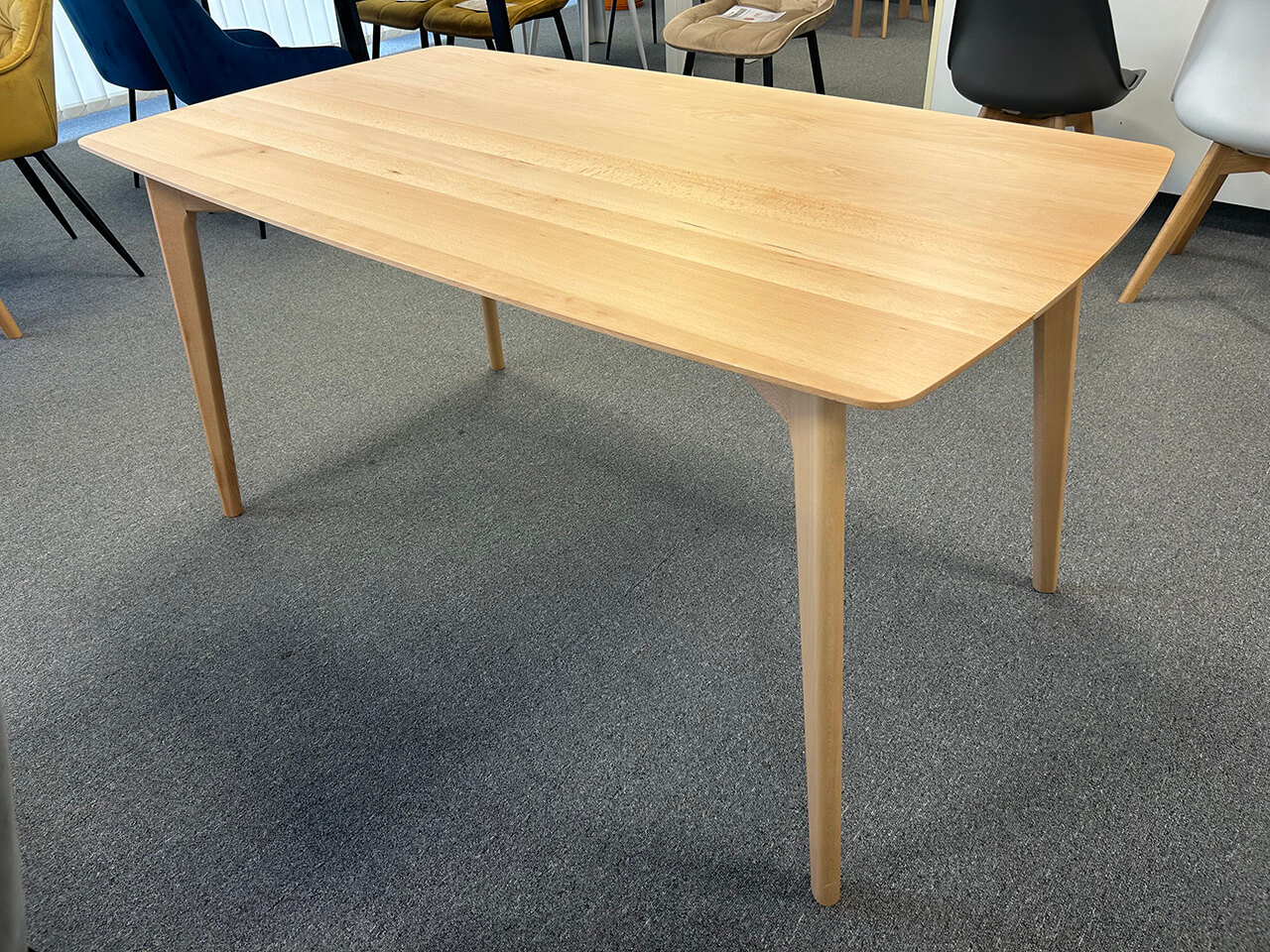 Stôl má vrchnú dosku vyrobenú z priebežnej bukovej škárovky. Zošikmené hrany po celom obvode dodávajú stolu celkový šmrnc. Farebné prevedenie si môžete zvoliť podľa Vašich preferencií zo vzorkovníka morenia FINES.