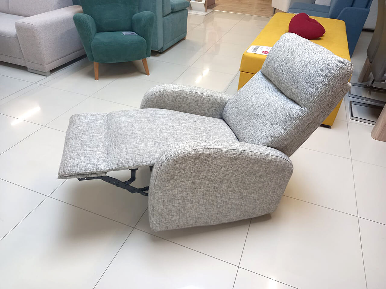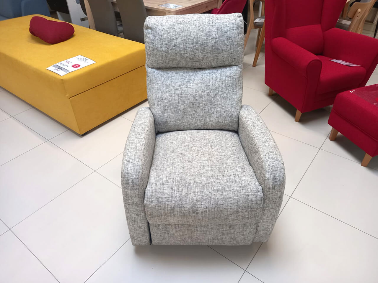 Štýlové, už od pohľadu pohodlné kreslo s rozkladom. Kreslu sa po rozložení vysunie opierka pod nohy a sklopí sa opierka. Navyše je kreslo otočné. V rozloženej polohe sa Vám bude určite pohodlne sledovať televízia, prípadne hrať vaša obľúbená hra na hracej konzole. Výška kresla je 101, šírka 72, výška sedenia 51, hĺbka sedenia 55 cm. Celková hĺbka kresla v zloženej polohe je 80 a pri plne rozloženej je 160 cm. Kreslo je očalúnené v látke príjemnej na dotyk v univerzálnom šedom odtieni.