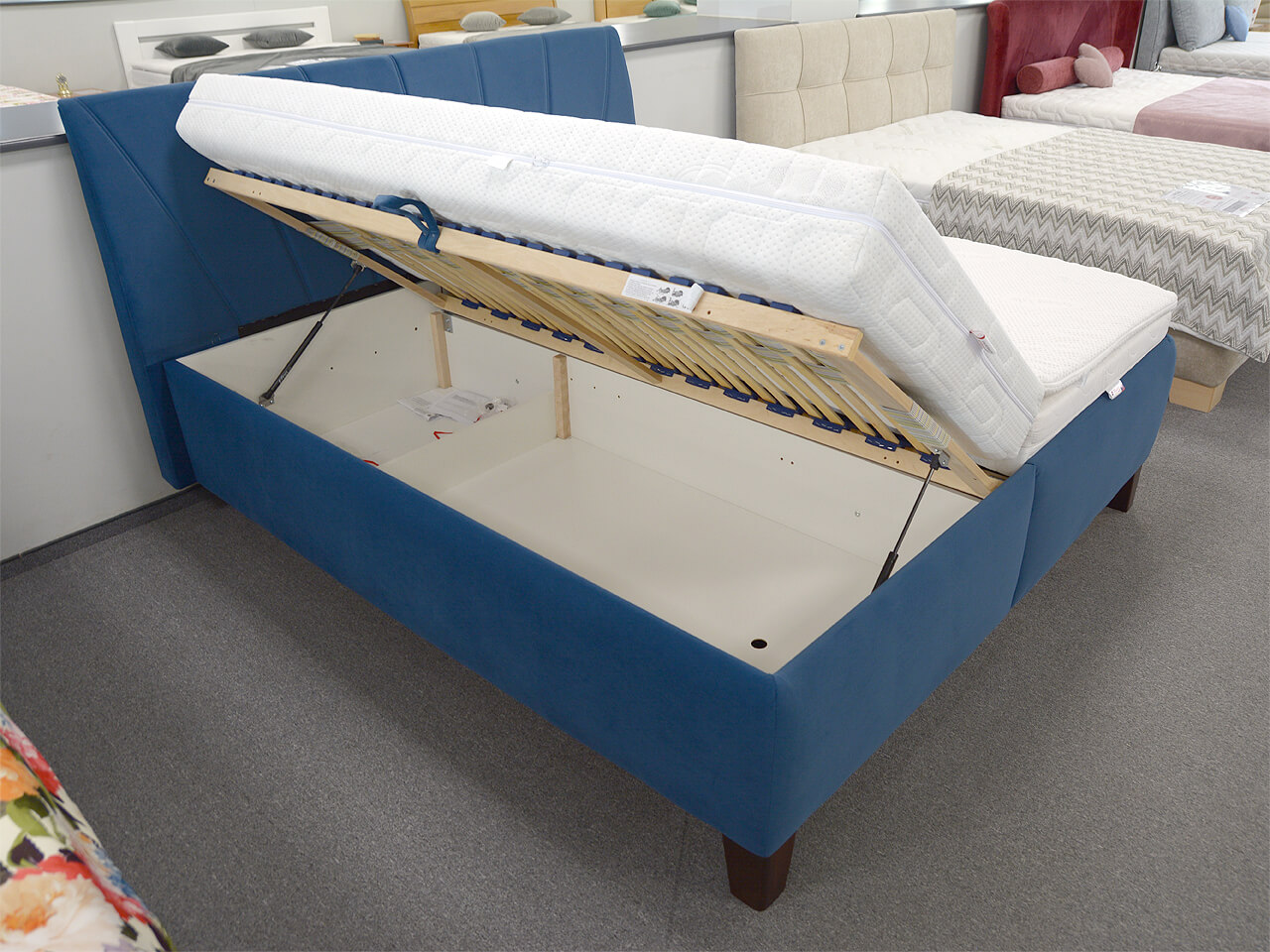 •  Čalúnená posteľ má v štandarde veľký úložný priestor, dostupný po vyklopení roštov.