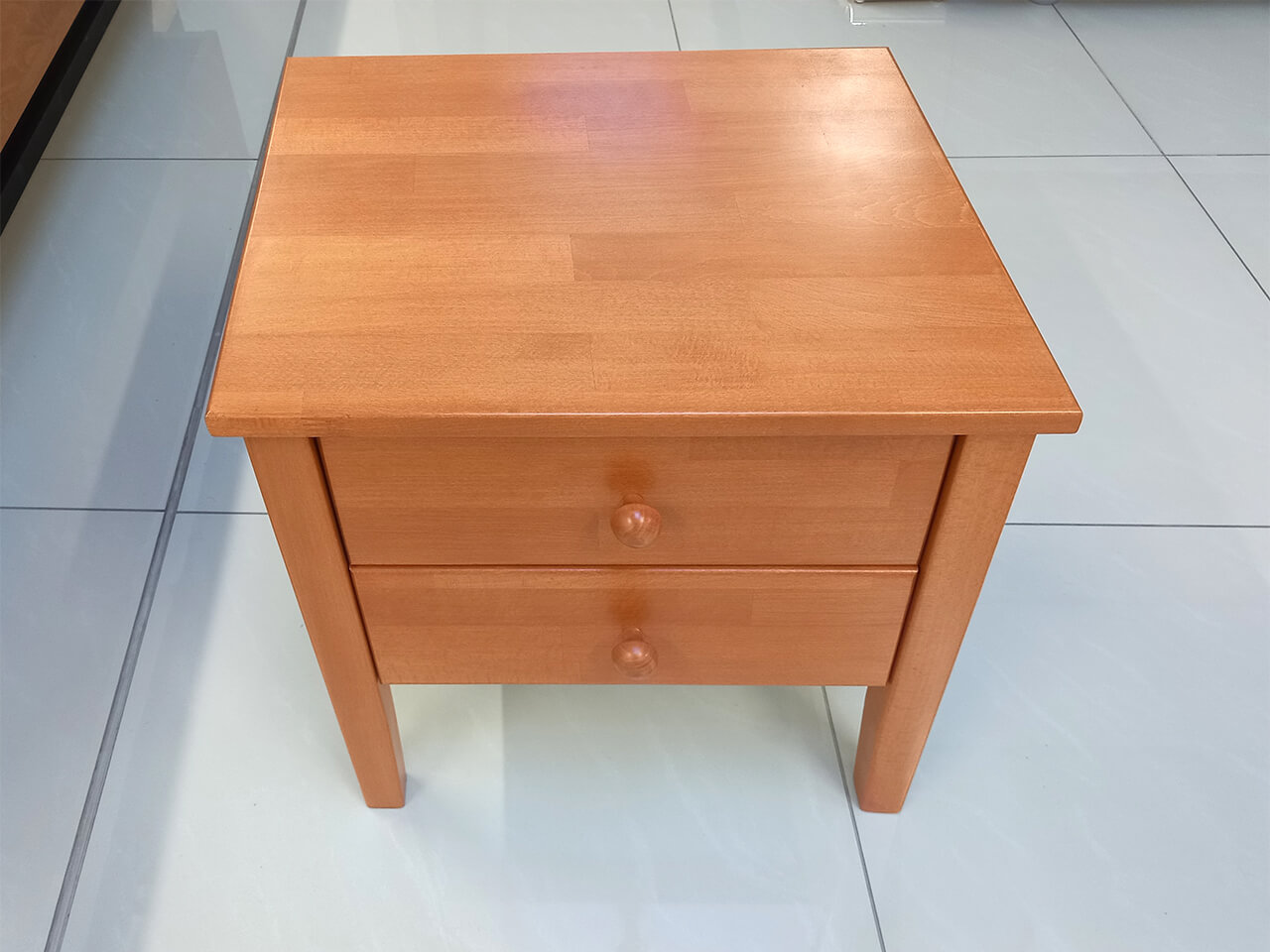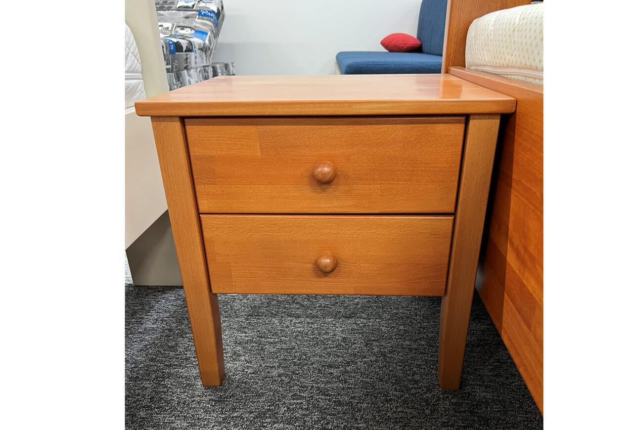 Univerzálny nočný stolík vyrobený z bukového masívu. Stolík má dve zásuvky, kde sa zmestia všetky veci, ktoré pri posteli potrebujete mať vždy po ruke. Farebný odtieň stolíka si môžete zvoliť podľa nášho vzorkovníka morenia. Napríklad nočný stolík tmavý orech, nočný stolík višňa atď.