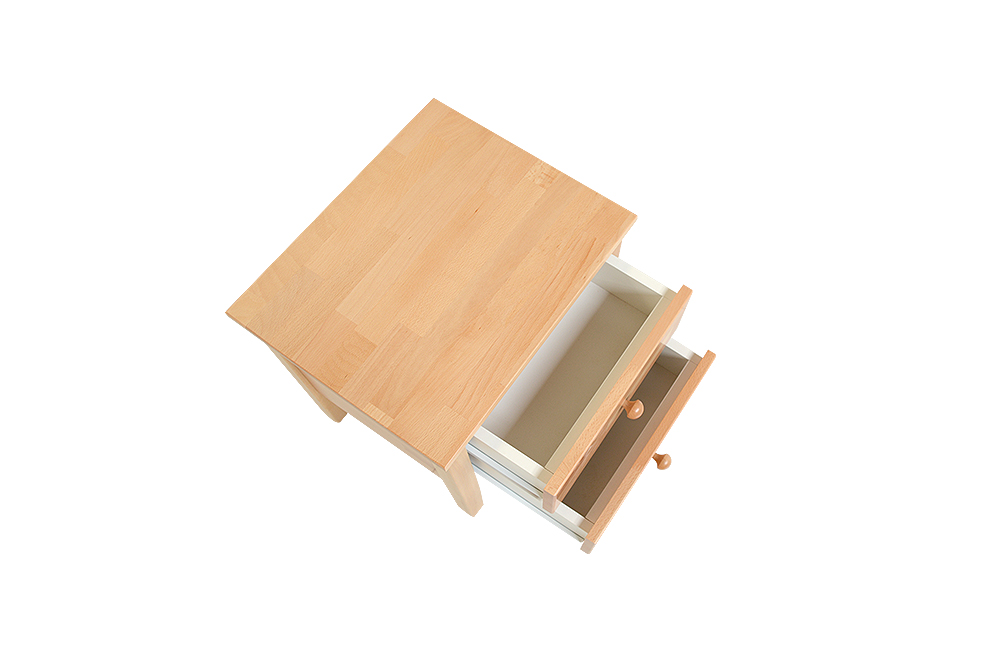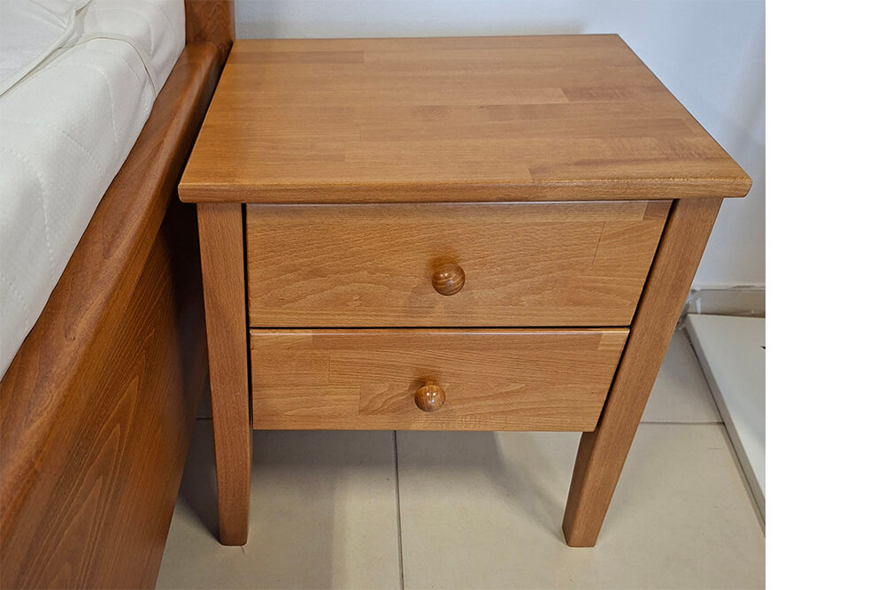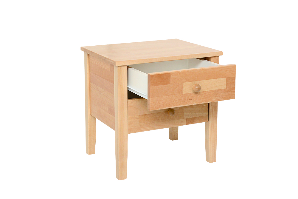 Univerzálny nočný stolík vyrobený z bukového masívu. Stolík má dve zásuvky, kde sa zmestia všetky veci, ktoré pri posteli potrebujete mať vždy po ruke. Farebný odtieň stolíka si môžete zvoliť podľa nášho vzorkovníka morenia. Napríklad nočný stolík tmavý orech, nočný stolík višňa atď.