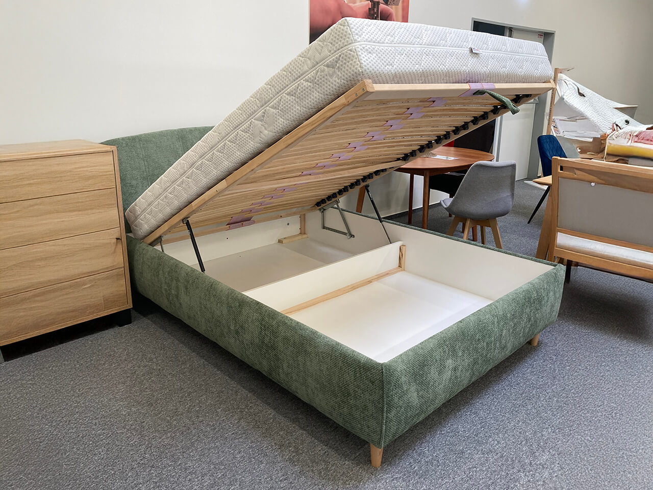 - Lamelové rošty s predným výklopom - prevedenie s pneu vzperami a očalúneným matracom